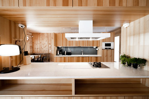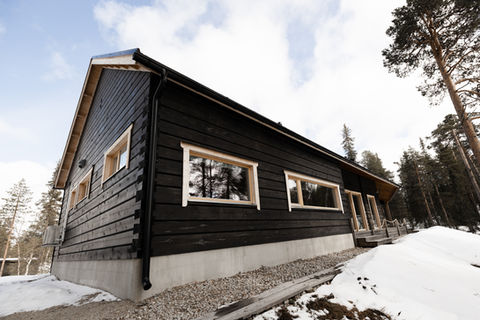Moderni ja ainutlaatuinen arkkitehdin suunnittelema lomahuvilakokonaisuus Enontekiön Ylikyrössä.